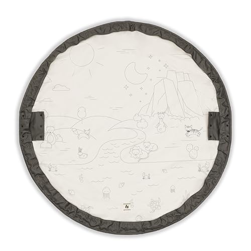 hauck Play N Tidy. Mörkgrå – 2-i-1 lekmatta och förvaringsväska för spädbarn och småbarn, 120 cm stor krypfilt med djurvärldsdesign, tvättbar och vikbar, snabb förvaring av leksaker