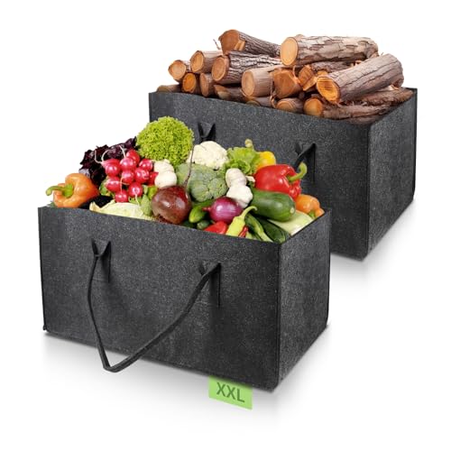 EFUTURETIME 2 stycken filtpåsar, 61 x 32 x 32 cm, filtväska, stor med handtag, filtväska, förvaring, träkorg för vedkläder, leksaker, böcker, mörkgrå