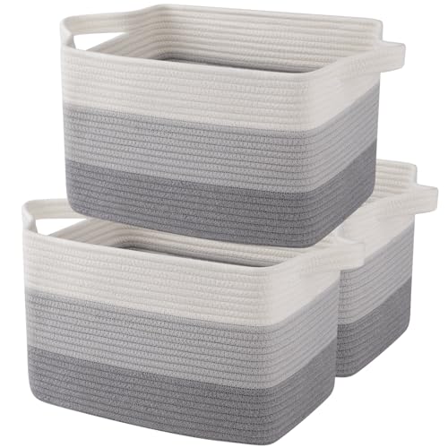 OIAHOMY Förvaringskorg, vävda korgar för förvaring, bomullsrep för leksaker, handdukskorgar för badrum – 3 stycken, gradient grå
