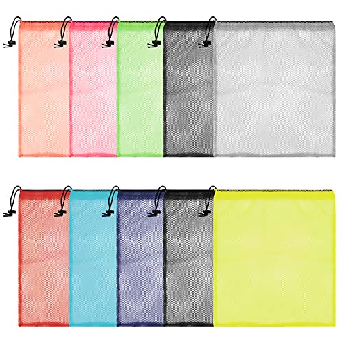 Belle Vous Mångfärgade Tygväskor i Nylon med Dragsko (10-Pack) - 35,5 x 40 cm - Tygpåse för Förvaring, Resor, Tvätt, Sportutrustning, Strand, Leksaker, Golf och Simning