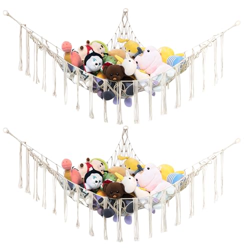 Lixiluxia 2 st plyschhållare hängande näthållare, Boho plysch leksak hängmatta, plyschleksaksorganisatör, nät förvaring för leksaker för sovrum