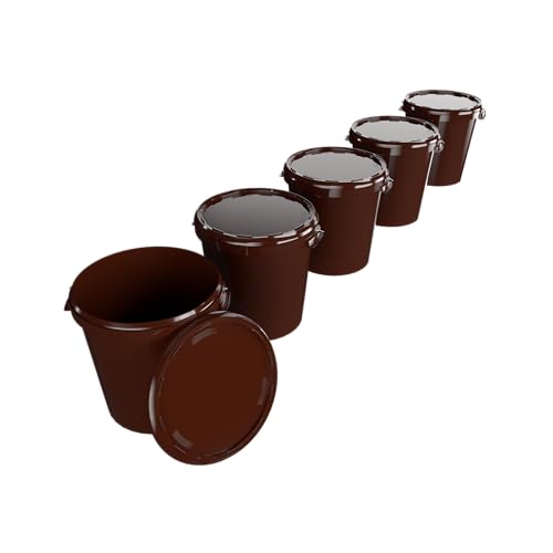 5 hinkar med lock 30 liter tillverkad i Tyskland – livsmedelssäker, stabil, lufttät – förvaringsbehållare för förvaring av mat, kontorsmaterial, barnrum, hushåll, verkstad, gastronomi brun