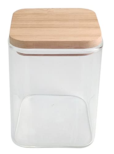 BIRAMBEAU Glasburk - förvaringslådor - bambulock - idealisk för förvaring av torr mat - lös shopping - kapacitet: 450 ml, beige