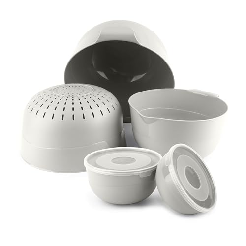 KADAX Skålset med 5 med lock, salladsskålar, plastskålar för förvaring av mat, fruktskålar, stapelbara serveringsskålar, blandskålar (vit)