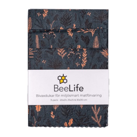 3-pack bivaxdukar premium rusakulan mörkblå, som används för hållbar förvaring av mat