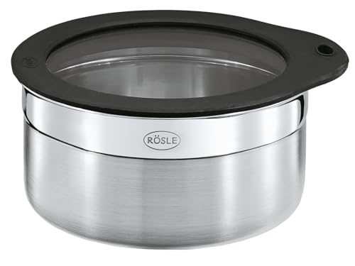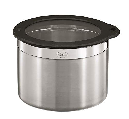 RÖSLE Burk med plastlock, högkvalitativ burk för förvaring av mat, hygienisk och smaklös, 18/10 rostfritt stål, diskmaskinssäker, 12 cm