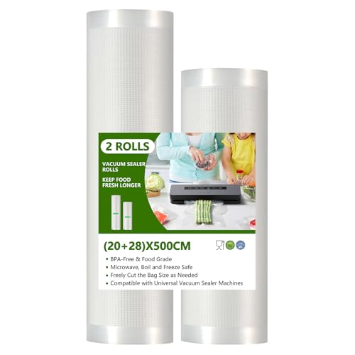 Diboniur Vakuumpåse för mat, 2 rullar 28/20 x 500 cm vakuumrulle, vakuumpåse för förvaring av mat och matlagning, BPA-fri, kompatibel