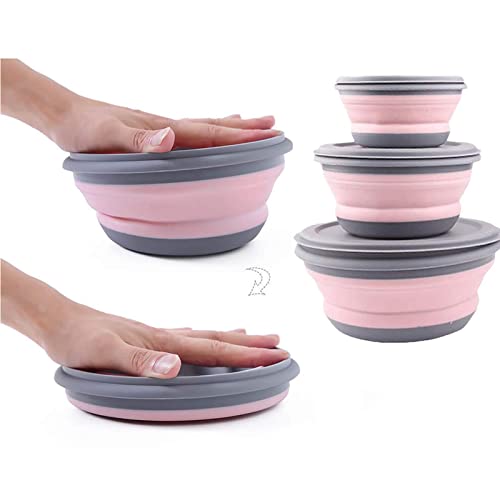 Silikon lunchlåda vikbar behållare förvaring mat set vikbar behållare förvaring mat förvaringsbehållare silikon vikbart för picknickpik vandring kök (rosa)
