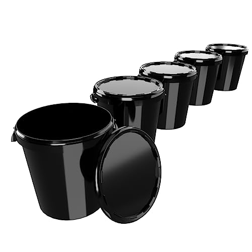 FixedByU 5 hinkar med lock 30 liter tillverkad i Tyskland – livsmedelssäker stabil lufttät behållare för förvaring av mat kontorsmaterial barnrum hushåll verkstad och gastronomi svart