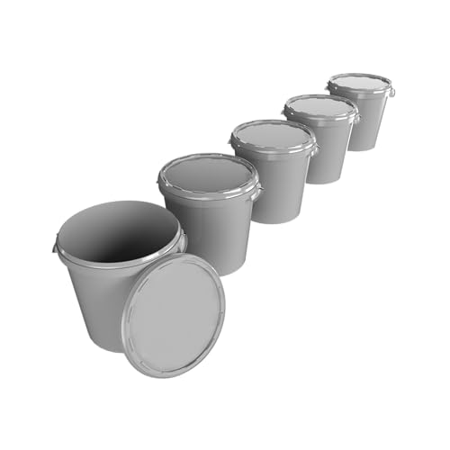 5 hinkar med lock 30 liter tillverkad i Tyskland – livsmedelssäker, stabil, lufttät – förvaringsbehållare för förvaring av mat, kontorsmaterial, barnrum, hushåll, verkstad, gastronomigrå