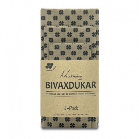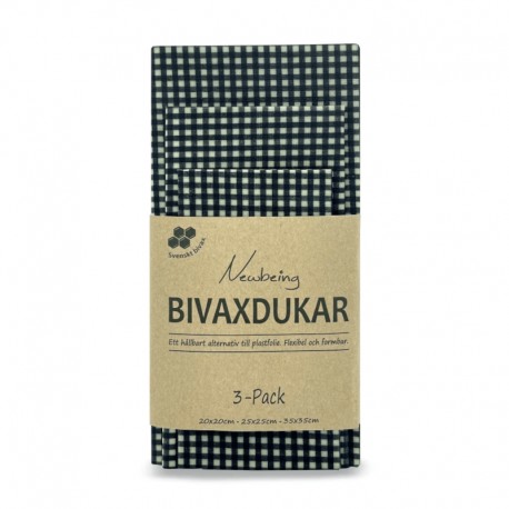3-pack bivaxdukar svart ruta, som används för hållbar förvaring av mat