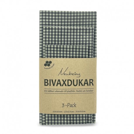 3-pack bivaxdukar grå ruta, som används för hållbar förvaring av mat