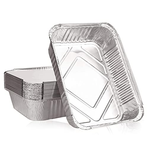 Gtwinsone Aluminiumfoliebrickor, 20-pack tennbehållare med lock, 1 000 ml, medium engångs för bakning BBQ rostning, takeaway, matlagning, frys, förvaring, mat (21,5 x 16 x 5 cm) silver