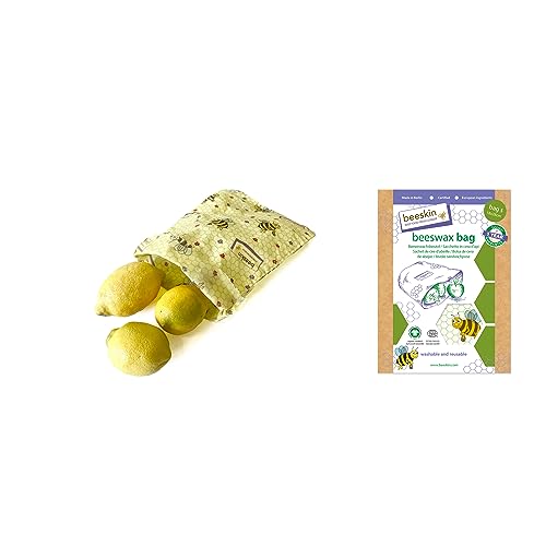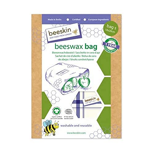 beeskin Biväxtpåse – blandning av bivaxduk och brödpåse för förvaring av mat – storlek: S, 18 x 28 cm (kökshandduk)