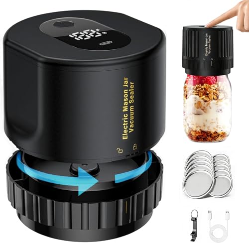 Elektrisk vakuumtätare för konserveringsburkar & Mason Jars – vakuumtätare med automatisk stopp, LED-display och färskförslutning för långvarig förvaring av mat