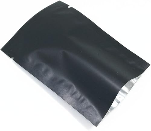 WACCOMT Pack 200 stycken platta öppna toppar Mylar-påsar vakuumförseglad långvarig förvaring av mat matt påse varm förseglad med skåra (8 x 12 cm (3,15 x 4,72 tum svart)