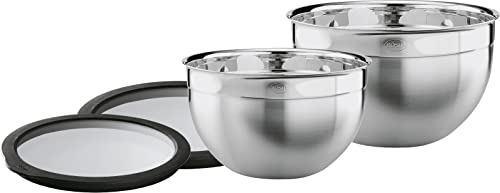 RÖSLE Skålset 2 delar och RÖSLE Plastlock (Ø 20 och 24 cm), högkvalitativa, välformade skålar av rostfritt stål för beredning och förvaring av mat, diskmaskinssäkra silverfärger