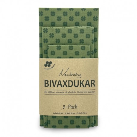 3-pack bivaxdukar grön blomma, som används för hållbar förvaring av mat