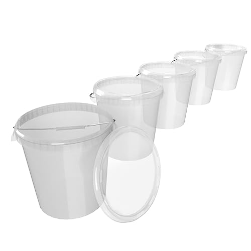 5 hinkar med lock 30 liter tillverkad i Tyskland – livsmedelssäker stabil lufttät behållare för förvaring av mat kontorsmaterial barnrum hushåll verkstad och gastronomi transparent