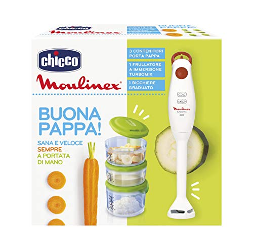 Chicco Blender med burkar, 1 nedsänkningsblandare, 3 hermetiska och graderade matbehållare med olika kapacitet, för förvaring av mat i kylen och frysen, vit