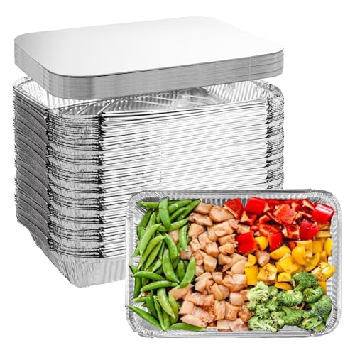 LOPYXBR 100 stycken aluminiumskålar med lock 800 ml, aluminiumskålar grill liten, 21 x 14 x 5 cm grillskålar i aluminium, engångs för bakning, stekning, matlagning, grillning, förvaring av mat