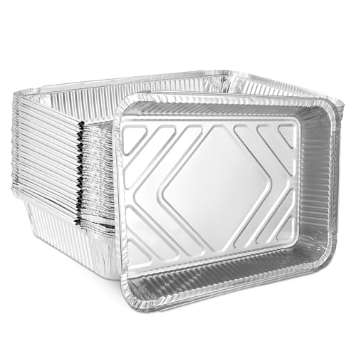 LOPYXBR 50 stycken aluminiumskålar grill, 2250 ml aluminiumskålar stor, 31,5 x 21,5 x 5 cm aluminiumgrillskålar, engångsdroppskålar av aluminium för matlagning, grillning, förvaring av mat