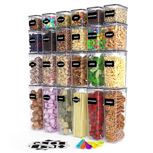 Famjam 24 Burkar Mat Förvaring Set med lufttäta lock, 32 etiketter, markör och mätskedar