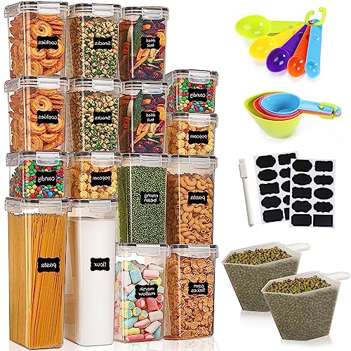 GoMaihe Matbehållare för spannmål set 27 stycken, lufttät, plast med livsmedelslock, används för förvaring av spannmål, müsli, mjöl
