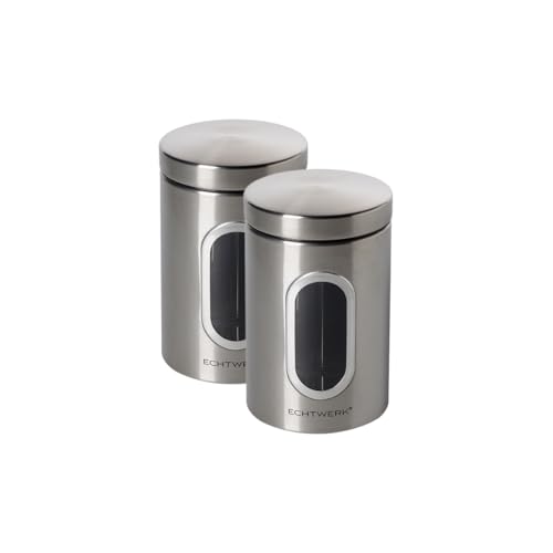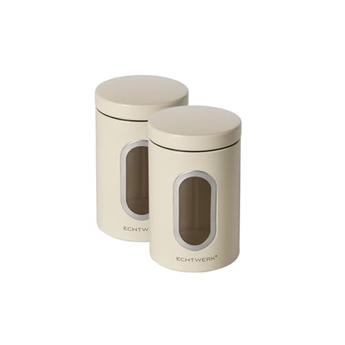 ECHTWERK Snygga förvaringsburkar set om 2, förvaringsbehållare, förvaringslåda, för förvaring av mjöl/socker/müsli/te, metallburk med lufttätt lock och stort fönster