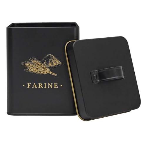 COOK CONCEPT, BT6812, Svart och guld metalllåda för förvaring av torra ingredienser, elegant och lufttät design, perfekt för mjöl, socker eller ris - Storlek: Large, Färg: Svart och Guld