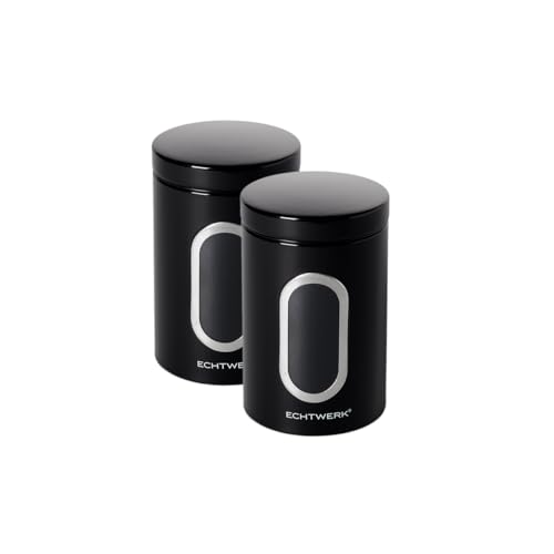 ECHTWERK Snygga förvaringsburkar set om 2 svarta, förvaringsbehållare, förvaringslåda, för förvaring av mjöl/socker/müsli/te, metallburk med lufttätt lock och stort fönster