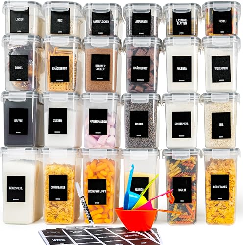 Deco haus® Förvaringsburkar 24 set för kök, lufttäta förvaringsbehållare – matförvaringslådor/-behållare av plast med lock – för förvaring av nudlar, flingor, mjöl etc