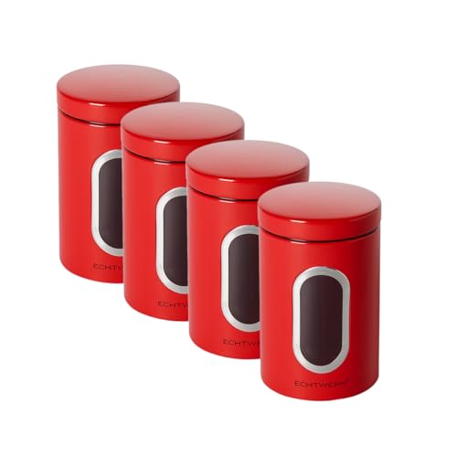 ECHTWERK Snygga förvaringsburkar set om 4 röda, förvaringsbehållare, förvaringslåda, för förvaring av mjöl/socker/müsli/te, metallburk med lufttätt lock och stort fönster
