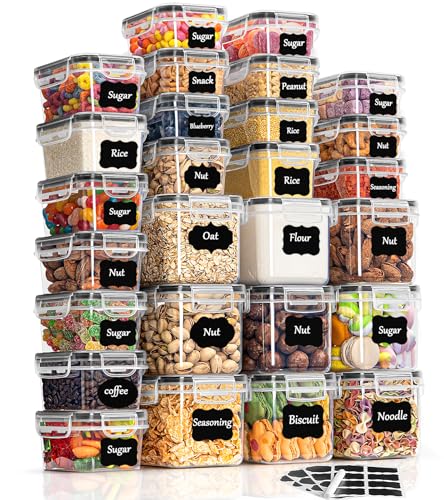 GoMaihe 32 st köksförvaringslådor, hermetiska livsmedelsburkar i förseglad plast med lock, för förvaring av flingor, pasta, mjöl, husdjursmat