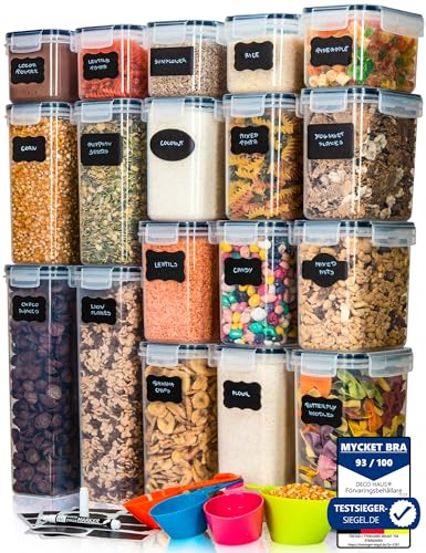 Deco Haus® Förvaringsburkar med Tätslutande Lock, 18-set - För Pasta, Müsli, Mjöl - Förvaringsbox Kök med Lock - Förvaringsbehållare Kök Förvaring & Organisation - Kitchen Storage & Organisation