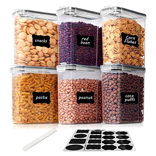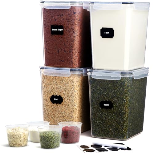 Lifewit Stora förvaringslådor för mat 5.2 liter/175 oz 4 stycken med lock. Lufttäta för mjöl, socker, ris, baktillbehör - Organisering i kök & skafferi Förvaring av stora mängder mat med mätbägare, etiketter, markör