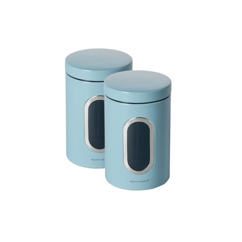 ECHTwerk snygga förvaringsburkar set om 2 stycken ljusblå, förvaringsbehållare, förvaringslåda, för förvaring av mjöl/socker/müsli/te, metallburk med lufttätt lock och stort fönster