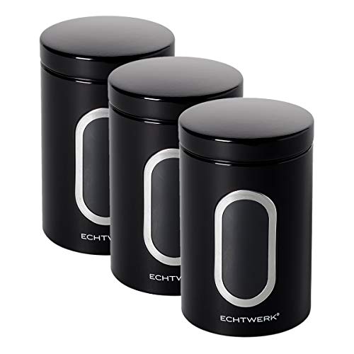 ECHTWERK snygga förvaringsburkar set om 3 svarta, för förvaring av mjöl/socker/müsli/te, metallburk med lufttätt lock och stort fönster, kapacitet 1, 4 l, järn, 3