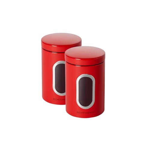 ECHTwerk snygga förvaringsburkar set om 2 röda förvaringsbehållare, förvaringslåda, för förvaring av mjöl/socker/müsli/te, metallburk med lufttätt lock och stort fönster