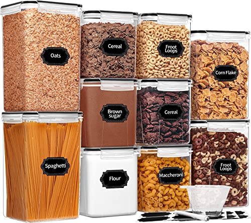 Skroam Stora lufttäta matförvaringsbehållare med lock, 10-pack förvaringsset för flingbehållare – BPA-fria skafferiorganisatörer och förvaring för mjöl, socker och ris med mätkopp, etiketter och