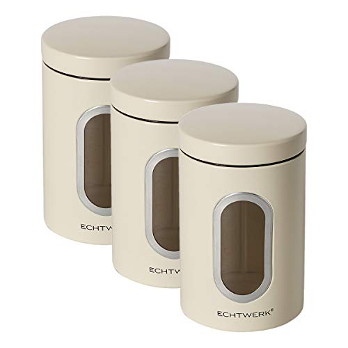 ECHTWERK snygga förvaringsburkar set om 3 creme, för förvaring av mjöl/socker/müsli/te, metallburk med lufttätt lock och stort fönster, kapacitet 1, 4 l, järn, 3