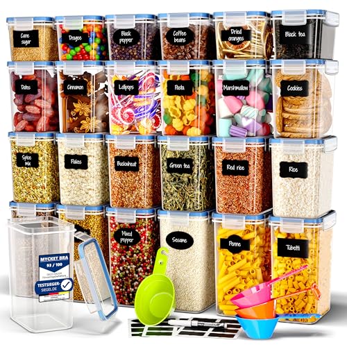 Deco haus Förvaringsburkar 24 set för kök, lufttäta förvaringsbehållare – matförvaringslådor/-behållare av plast med lock – för förvaring av nudlar, flingor, mjöl etc