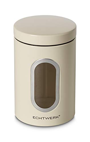 ECHTWERK snygga förvaringsburkar single creme, för förvaring av mjöl/socker/müsli/te, metallburk med lufttätt lock och stort visningsfönster, kapacitet 1, 4 l