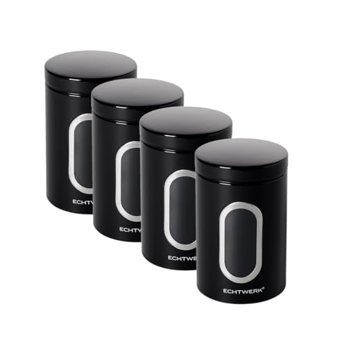ECHTWERK Snygga förvaringsburkar set om 4 svarta, förvaringsbehållare, förvaringslåda, för förvaring av mjöl/socker/müsli/te, metallburk med lufttätt lock och stort fönster