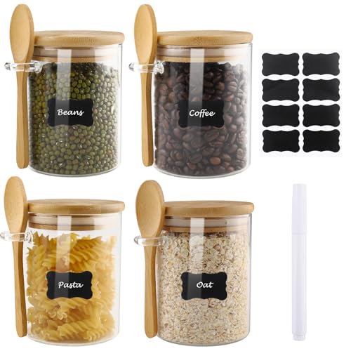 Zosenyer Förvaringsburkar med lock och sked, set om 4 350 ml övernattningsburkar, glasbehållare för förvaring av torrprodukter, kryddor, te, nötter, frön, nudlar, mjöl, kaffebönor