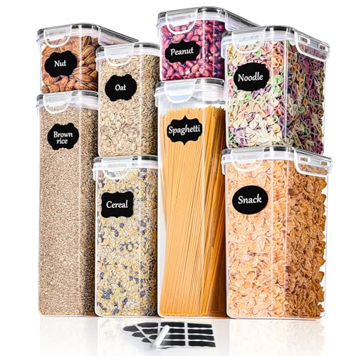 Huanmin 8-pack kök förvaringslåda, med lock, förvaring och organisering av kök och garderob, BPA-fri plast matförvaringslåda, för spannmål, pasta, mjöl, socker etc