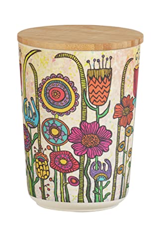 Förvaringsburk Flowers, blommig förvaringsbehållare med lock av bambu, lufttät förvaring av müsli, mjöl och socker, BPA-fri, kapacitet 0,7 liter, Ø 10,5 x 14,5 cm, flerfärgad