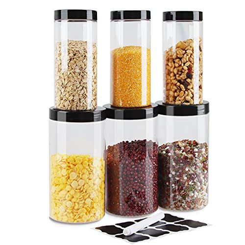 Vtopmart Spannmålsbehållare på 2,5 l för förvaring, BPA-fri plast, kök, skafferi, mjöl, förvaring, set om 6 med 24 etiketter (svart)