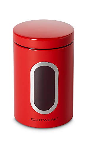 ECHTWERK snygga förvaringsburkar singelröd, för förvaring av mjöl/socker/müsli/te, metallburk med lufttätt lock och stort fönster, kapacitet 1, 4 l