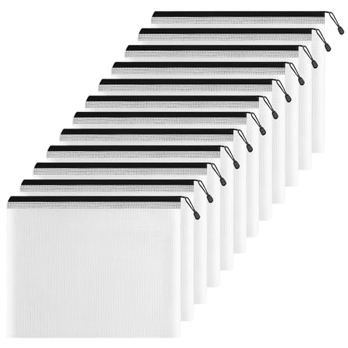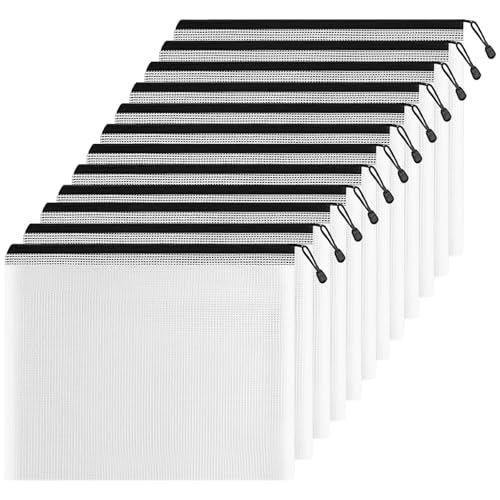A3 dragkedja dokumentficka, 12 st transparent PVC-dokumentmapp, förvaring av papper små föremål, kosmetika och resetillbehör etc (12 st, svart)